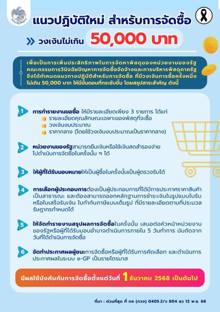 แนวการปฏิบัติใหม่ สำหรับการจัดซื้อจัดจ้าง วงเงินงบประมาณไม่เกิน 50,000 บาทข่าวที่น่าสนใจ, ข่าวประชาสัมพันธ์, คลังความรู้, บทความ/เอกสารเผยแพร่พฤศจิกายน 17, 2025พฤศจิกายน 17, 2025 Post Views: 60